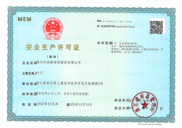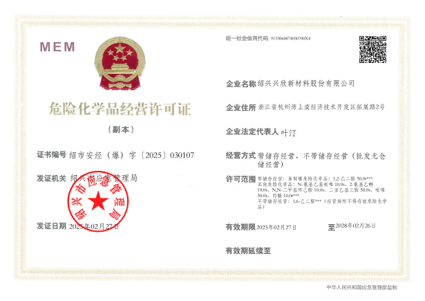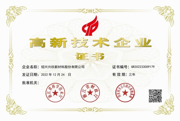 紹興興欣新材料股份有限公司成立于2002年06月27日,占地面積122畝,位于杭州灣上虞經(jīng)濟(jì)技術(shù)開(kāi)發(fā)區(qū)拓展路2號(hào),現(xiàn)有職工200余人,專(zhuān)業(yè)技術(shù)人員50余人;博士、碩士研究生30余人組成的一支知識(shí)型、專(zhuān)業(yè)化的技術(shù)科研團(tuán)隊(duì)。公司面向全球市場(chǎng),專(zhuān)業(yè)開(kāi)發(fā)電子化學(xué)品、環(huán)?;瘜W(xué)品、醫(yī)藥中間體、高分子材料等先進(jìn)新材料重點(diǎn)領(lǐng)域的省級(jí)科技型企業(yè);建有浙江上虞、安徽東至兩個(gè)生產(chǎn)基地。目前為“國(guó)家高新技術(shù)企業(yè)”、浙江省“隱形冠軍”企業(yè)、浙江省專(zhuān)精特新中小企業(yè);建有“省級(jí)”研究開(kāi)發(fā)中心,共建天津大學(xué)浙江紹興研究院電子化學(xué)品研發(fā)中心。